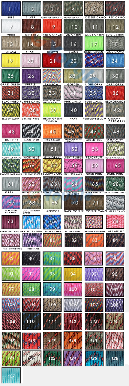Vyberte si libovolnou délku a barvu paracord lana, z našeho 1. sortimentu barev